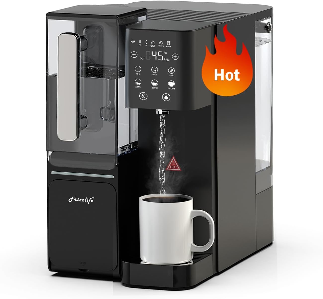 Frizzlife Countertop R O Water FilterInstant Hot Water Dispenser, Alkaline RO System, NSF/ANSI 58 Certified Elements, Adjustable Temp & Volume, TDS & Filter Life Monitoring